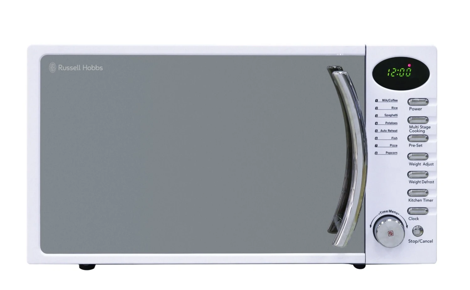 The Russell Hobbs RHM1714WC microwave has a sleek and stylish design, boasting an attractive mirror door finish. This eye-catching appliance is simple and easy to use, with 700 watts of microwave power, offering quick and convenient cooking in your home.