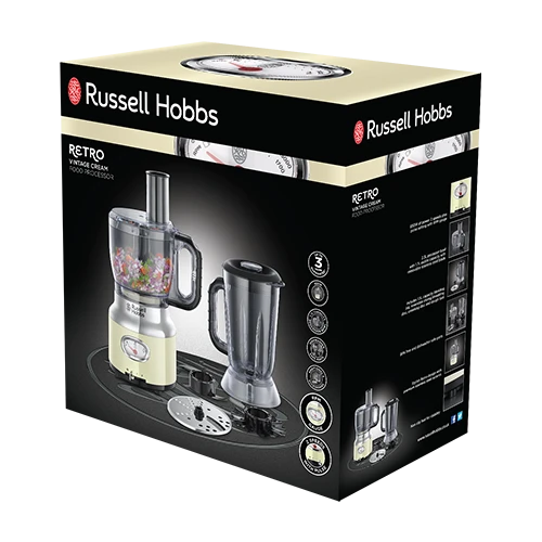 In a classic cream with stainless steel accents, this food processor will ensure you chop, blend and mix your way to a tasty treat in style, making a statement on any kitchen counter. Whatever you have in mind, whether it be blending margaritas to share with friends or slicing onions for that healthy salad for work, or even mixing together the ingredients to whip up a sweet treat, the Retro Food Processor will quickly become your go-to-gadget in the kitchen.