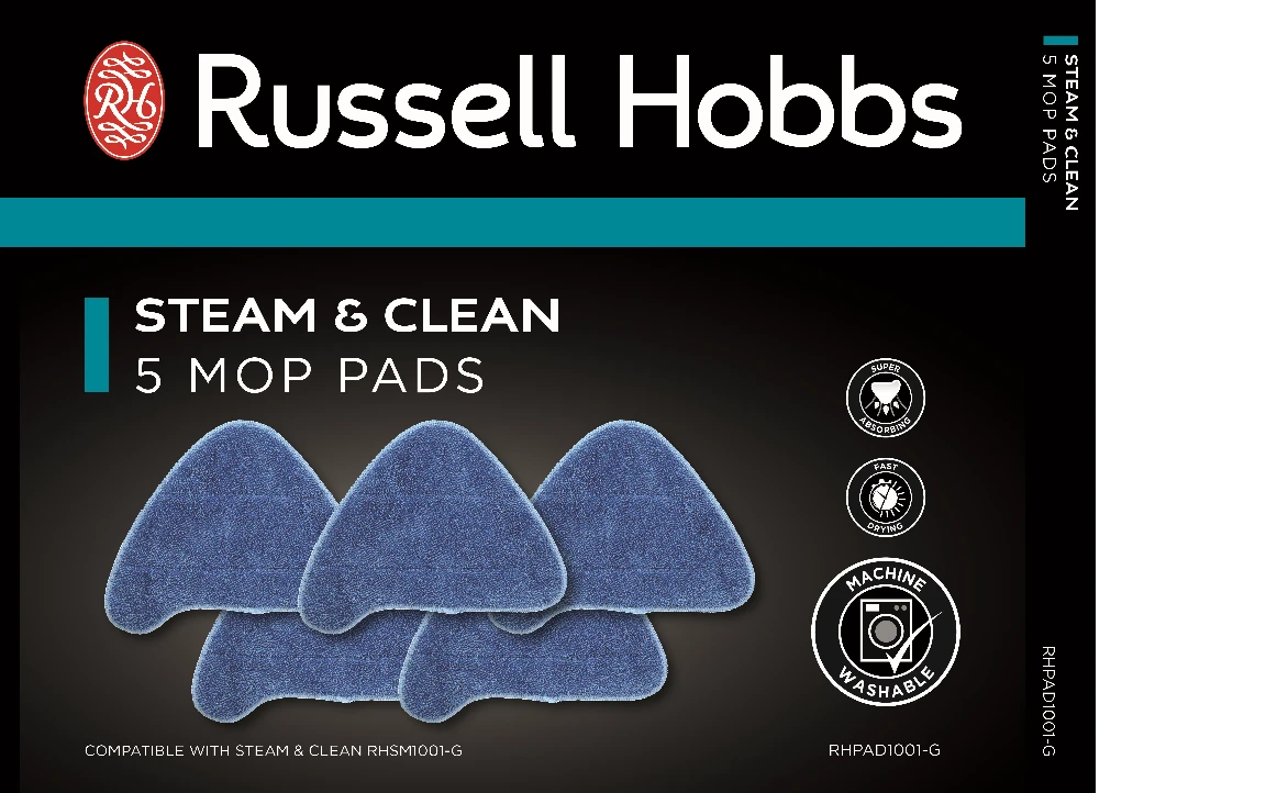 The RHSM1001-G has a low profile mop head for cleaning under and around furniture with ease. With an 5m cable, clean further without the need to change sockets as often. Attach your pad along with the carpet glider to breathe new life into your carpets and rugs. Once you have finished steaming, tilt the mop forwards and the steam flow will automatically cut off. The microfibre pads can be cleaned in the washing machine to be used time and again.
