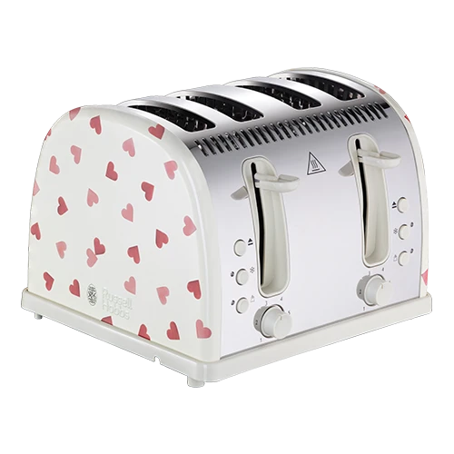 Two of the country’s best-loved household names, Russell Hobbs and Emma Bridgewater have collaborated to bring a touch of romance to the heart of your home with the Pink Hearts 4-slice toaster. This premium toaster complements Emma’s colourful pottery collection that features hand-drawn Pink Hearts, making each product feel different. It also has 48% faster toasting*, wider slots and a 2-slice option for smaller portions.