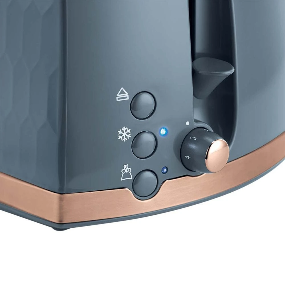 The Honeycomb 2 Slice Toaster combines a Honeycomb-Inspired Design with a Premium Grey Textured Plastic, to bring you this on-trend toaster. With a High Lift Feature for safe and easy toast removal – making breakfast has never been easier.