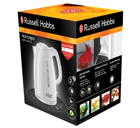 The Russell Hobbs White Textures Kettle is practical, stylish and combines good looks with a host of essential design features. With its unique matt and high gloss finish in clean, fresh white it will earn pride of place in the heart of your kitchen. The White Textures Kettle brings you a level of functionality you won’t find in other kettles in its price range, it brings you style and quality on a budget.